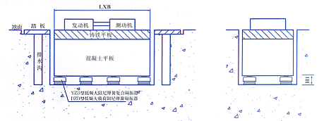 二、發(fā)動機試驗臺隔振安裝示意圖: