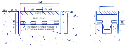 發(fā)動機試驗平臺上,發(fā)動機運轉(zhuǎn)時產(chǎn)生的振動量較大,如不采取隔振措施,會對周圍精密儀器、儀表的正常使用、工作環(huán)境、建筑設(shè)施等都會帶來不良影響。所以必須采取隔振措施,以隔除振動,降低噪聲,保護環(huán)境,美化環(huán)境,也為工作人員提供一個舒適的工作場所。